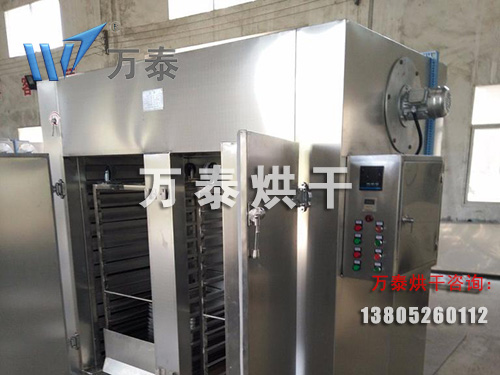 熱風(fēng)烘干箱以蒸汽和電或煤炭為熱媒,利用高效加熱設(shè)備加熱,大量熱風(fēng)在箱內(nèi)進(jìn)行了熱風(fēng)循環(huán),經(jīng)過不斷新風(fēng)補(bǔ)充從進(jìn)風(fēng)口進(jìn)入箱體,然后不斷從排濕口排出,這樣增加了傳熱效果,使箱內(nèi)物料水份逐漸減少,達(dá)到烘干效果。